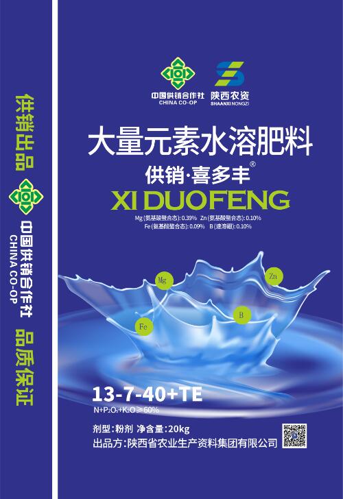 供銷(xiāo)喜多豐大量元素水溶肥13-7-40+TE(高鉀型)