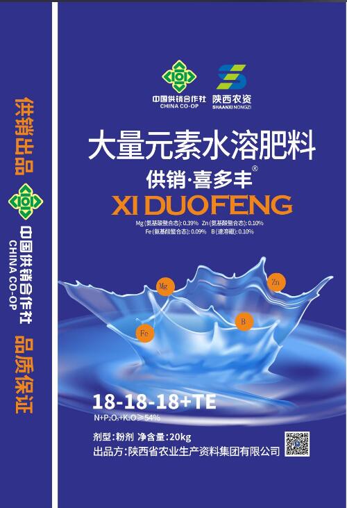 供銷(xiāo)喜多豐大量元素水溶肥18-18-18+TE(平衡型)